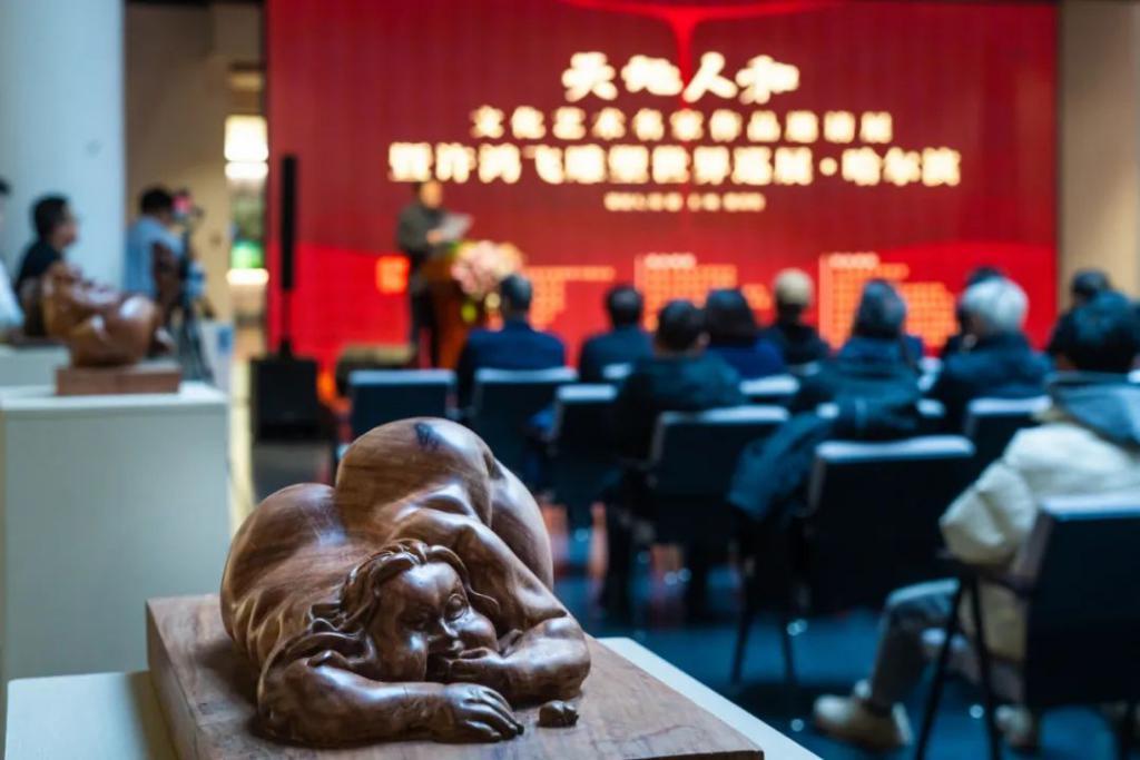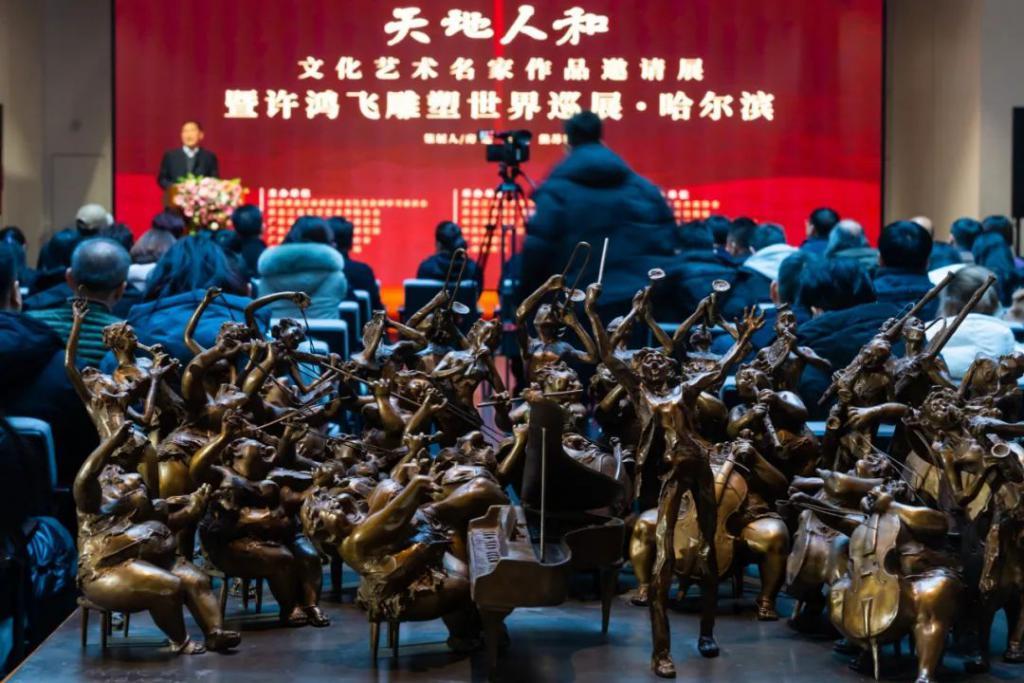 12月24日,由政协黑龙江省委员会文化文史和学习委员会、黑龙江省文学艺术界联合会、广东省政协联络工作委员会、广东省人民政府文史研究馆、广东省文学艺术界联合会、广州市文化广电旅游局共同主办的“天地人和”文化艺术名家作品邀请展暨许鸿飞雕塑世界巡展哈尔滨站在禹舜美术馆隆重开幕。