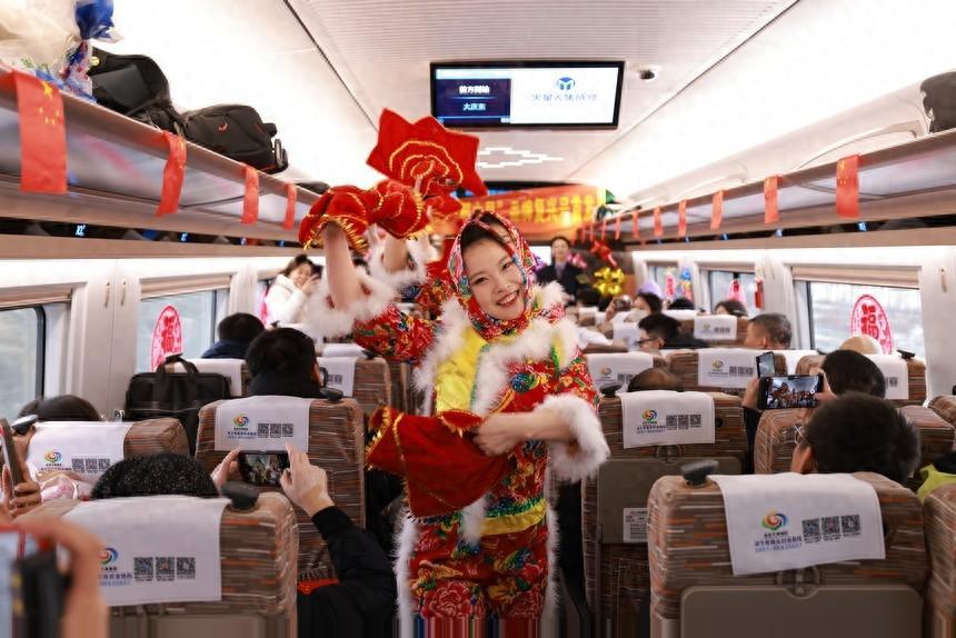 穿东北花袄、看舞蹈表演、品尝特色美食……近日,铁路部门新投放的齐齐哈尔南站至北京朝阳站G904次高寒智能动车组正式启程,车厢内热闹非凡的活动让旅客们感受到了东北民俗文化的魅力。