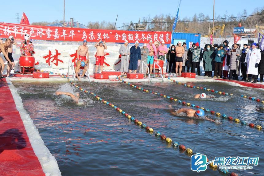 在虎林市红星湖冬泳训练基地“乌苏里杯”全国极寒冬泳段位赛现场,零下二十多度的气温并没有降低参赛选手的参赛热情,热身舞蹈“冰迎新春”和表演“鼓舞盛世”火热拉开了此次比赛的大幕。伴随着鸣枪发令,来自全国各地的“泳士”们纷纷跃入水中,挥动手臂,在冰雪中释放自我、逐浪追击。水中竞相追逐,岸上呐喊助威,游客们纷纷拿出相机、手机,记录寒冷冬日下的“火热”瞬间。现场游客中,还有许多金发碧眼的俄罗斯游客,他们纷纷赞叹中国“冬泳”的魅力。