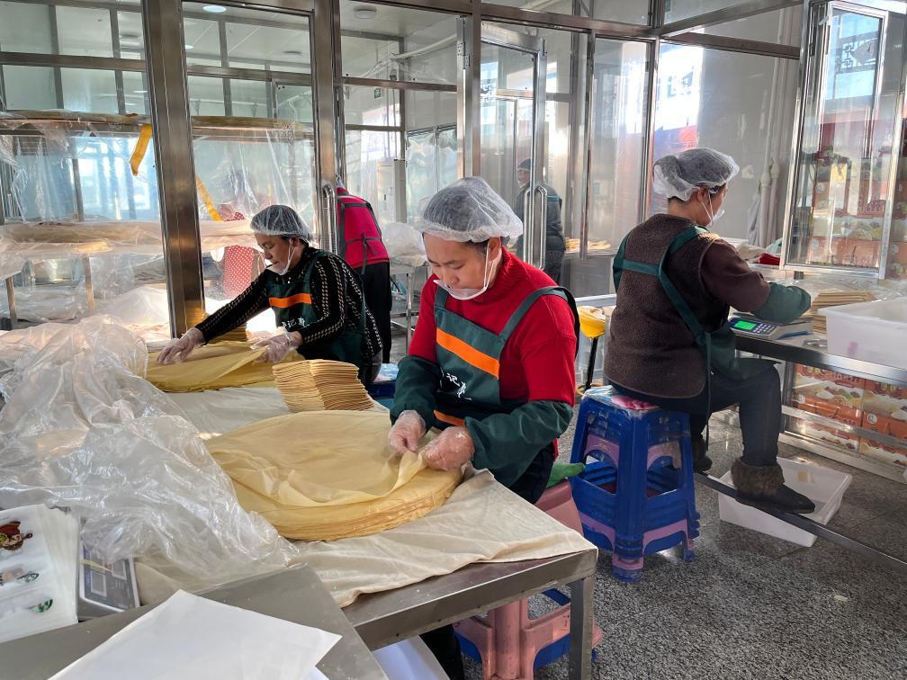图为黑龙江省齐齐哈尔市甘南县甘南镇平安村煎饼加工车间。新华社记者唐铁富 摄