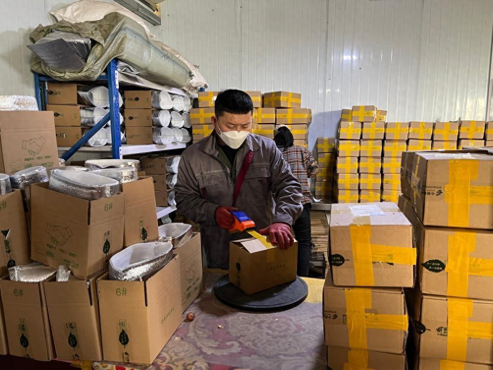 “这段时间正是销售旺季!我一天能包1500多个快递。”在美满村电商服务站内,村民樊东波一边熟练地给装满毛葱的箱子打包贴签一边对记者说。