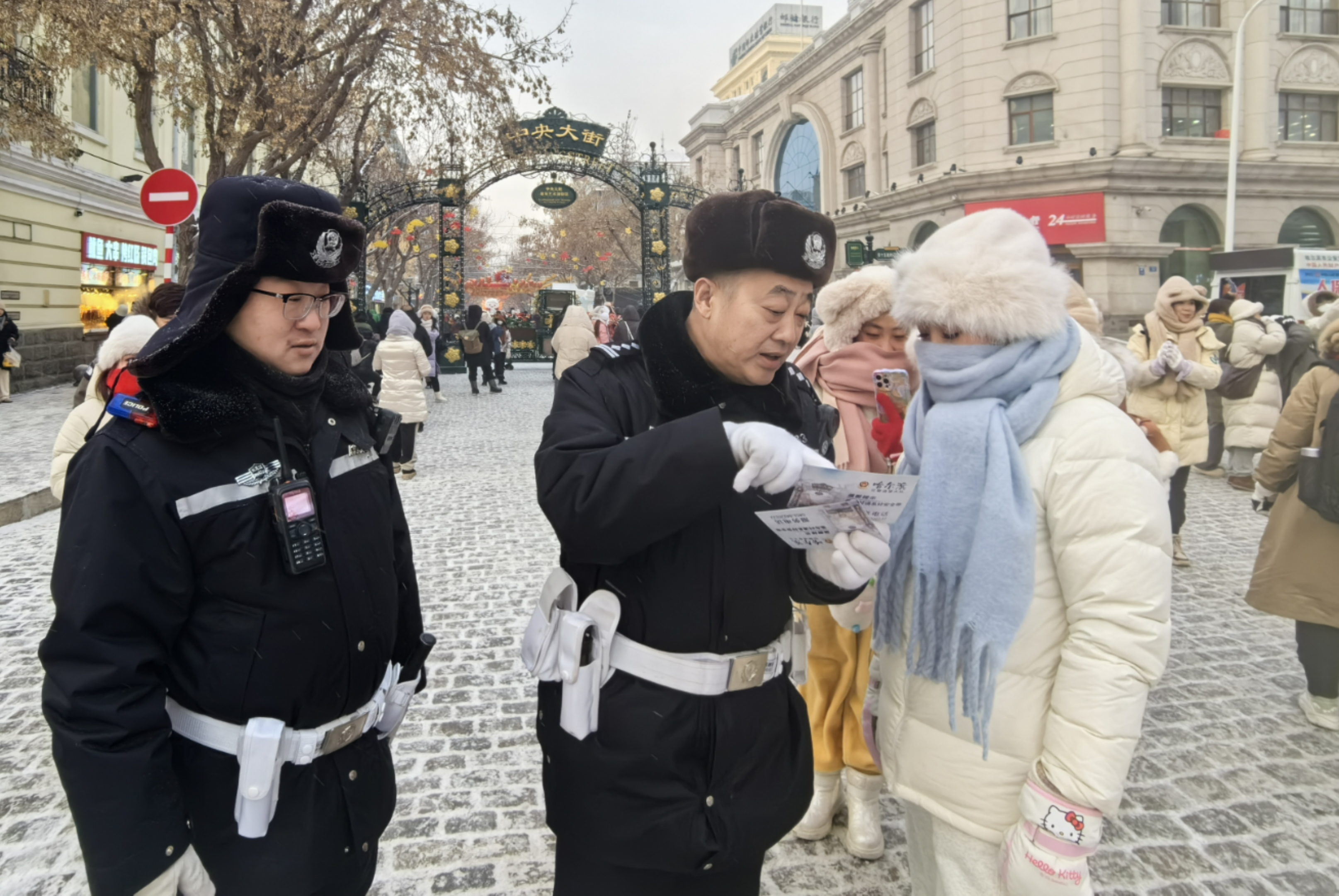 随着第40届中国·哈尔滨国际冰雪节盛大开启,冰城哈尔滨成为全国的旅游热点城市,中外游客纷至沓来,赏冰玩雪,品尝美食,并感受着冰城人民的一片火热真情。为了确保广大游客的交通安全,哈尔滨市公安局交警部门深入冰雪大世界、索菲亚广场、中央大街、音乐广场等旅游景点,开展“一盔一带 安全常在”主题宣传活动,通过发放宣传资料、展出宣传展板、播放交通安全宣传片和开展有奖问答活动的方式,进一步提高广大游客的交通安全意识,大力倡导“安全带=生命带”,重点提示乘坐客运车辆时,务必全程全员系好安全带。