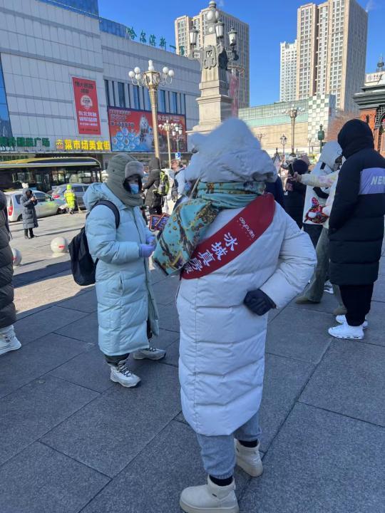 “谢谢,谢谢你们让我们在寒冷的街头,感受到冰城人的如火热情……”记者在索菲亚教堂广场、中央大街和群力音乐公园看到,贝壳网、悦居网的志愿者们在街头支起了小桌,摆放上了暖水壶和暖宝贴,过往游客只要有需要,志愿者们便为他们送上一杯杯红糖姜茶或暖宝贴,在游客们喝茶的间隙,志愿者们还向他们热情地介绍哈尔滨推出的购房、租房政策以及相关房源信息等。很多外地游客手捧冒着热气的姜茶,向志愿们投送来感谢的目光,“大家都说尔滨人真好,尔滨真好”!