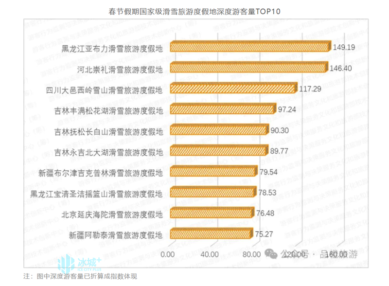 近日,来自游客行为监测与决策服务文化和旅游部技术创新中心(筹)的数据显示:春节假期,26家国家级滑雪旅游度假地(核心区)共接待深度游客82.0万人,黑龙江亚布力滑雪旅游度假地位列深度游客量首位。