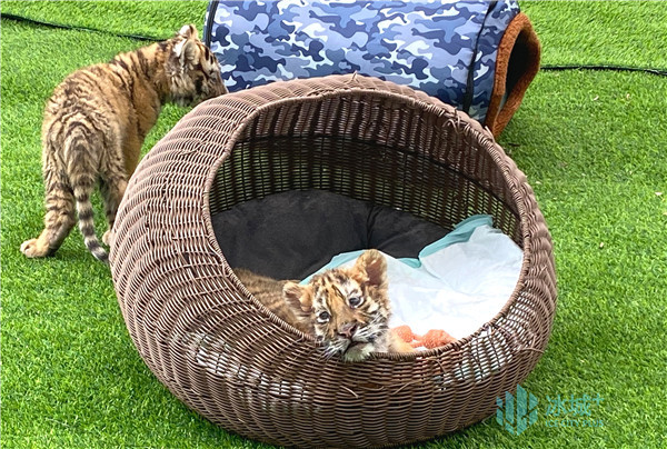 “快去萌虎乐园看小老虎呀!”“他们还没有名字呢!好呆萌啊!”4月24日上午,由黑龙江省文化和旅游厅、黑龙江省林业和草原局、哈尔滨市文化广电和旅游局主办,黑龙江东北虎林园等承办的甲辰春虎日·虎文化非遗传承荟在东北虎林园启幕。现场,两只两个多月大的小老虎在萌虎乐园“走秀”,踏着融融春光与游客们打招“虎”。