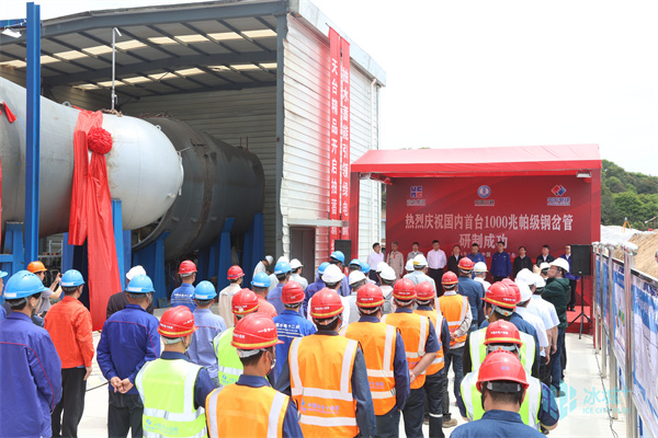 4月27日,天台抽水蓄能电站首台引水钢岔管现场验收仪式,在哈电电机天台钢岔管加工厂举行。哈电电机研制的国内首台1000兆帕级高强钢引水钢岔管——天台抽蓄电站首台钢岔管经过两次水压试验循环,钢岔管均经受住了最高9.5兆帕水压试验,应力应变等满足设计要求,顺利通过验收,填补了国内空白。