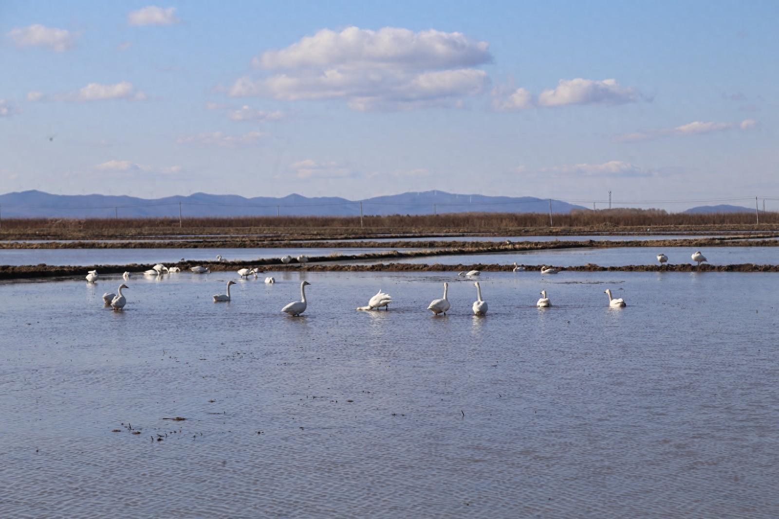 北大荒农业股份有限公司青龙山分公司的稻田成为了天鹅的栖息地