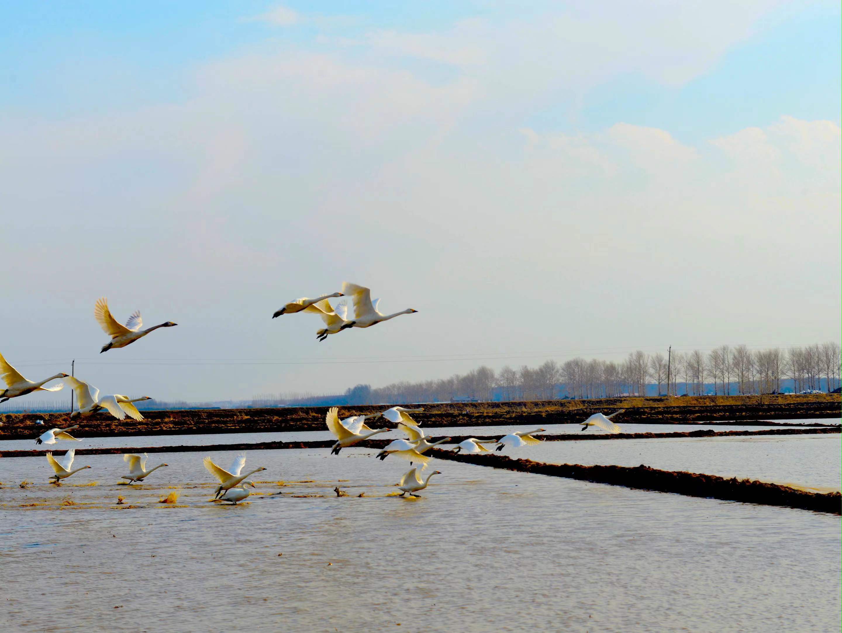 “这几年大家的环保意识都变强了,白天鹅来得也一年比一年多,场面越来越壮观,真让人激动。”成百上千的白天鹅在稻田里闲庭信步、振翅高歌,吸引了许多种植户前来欣赏。