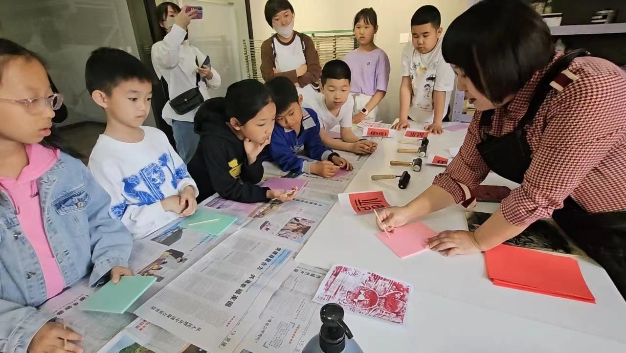 5月4日,哈尔滨市博物馆的欧洲铜版画收藏馆开启了一场铜版画艺术体验研学活动,共有七组亲子家庭参与活动。研学课堂从认识铜版画开始,欧洲铜版画收藏馆馆长刘汉英为孩子们讲述欧洲铜版画的历史、艺术价值、工艺特点等,在“清明上河图”专区,刘汉英对全长十九米的《清明上河图》所包含的内容进行了详尽的介绍。为了培养孩子们的动手能力,加深对铜版画艺术的理解,刘汉英鼓励孩子们课后在铜版画文创绘纸上进行创作。