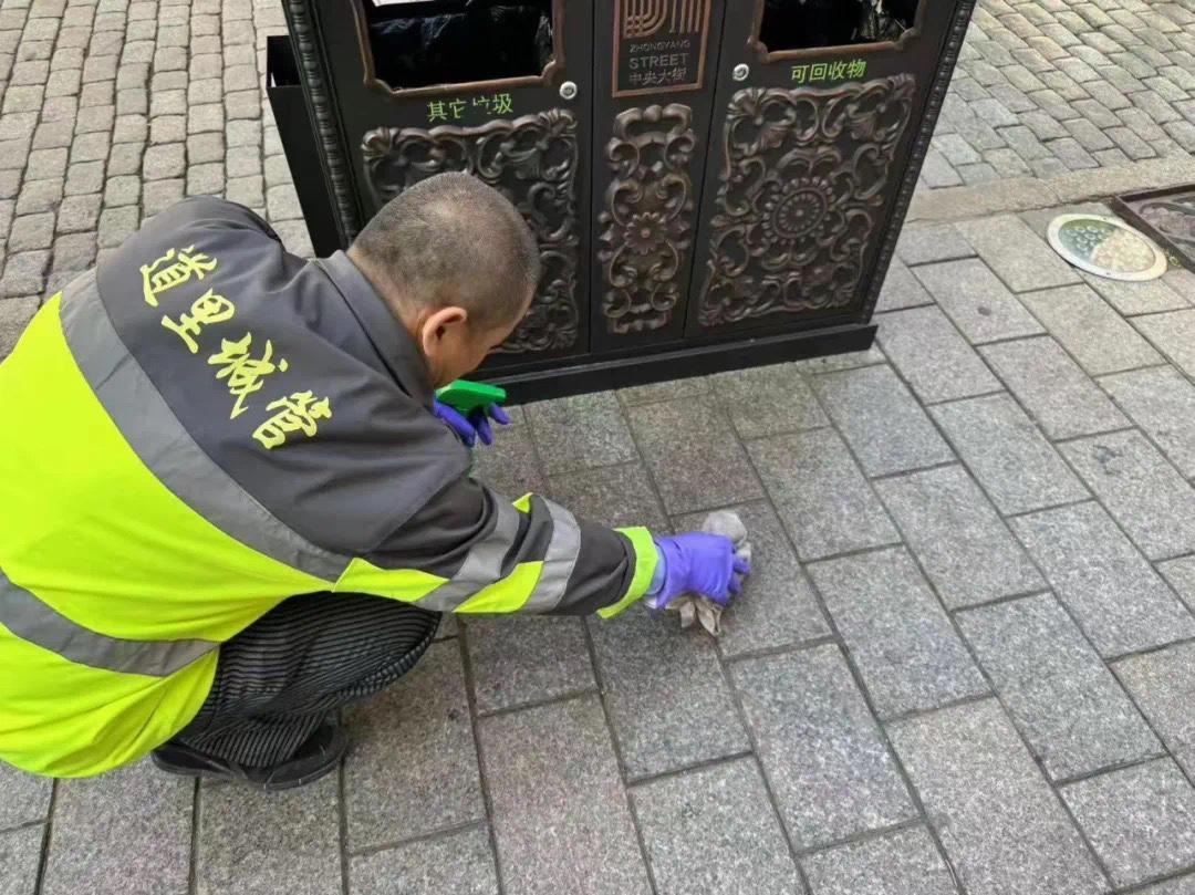 针对中央大街餐饮商家较多,商家、游客扔倒垃圾以食品废弃物为主,汤、油、水混合后对果皮箱、排水口理石路面造成极大污染,哈尔滨市道里区城管局在全市范围内率先使用新型涂料,为理石路面穿上“防污衣”,彻底解决油污清理难问题。