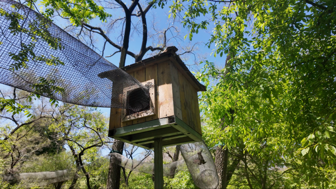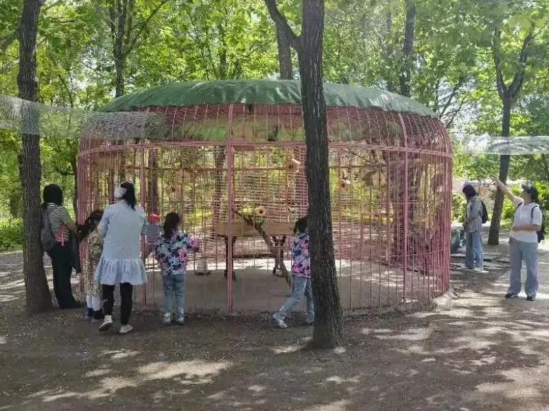 除了增加了5个松鼠笼作为与游客集中互动的区域外,岛内每个松鼠笼还可与树笼互通,让松鼠们可以在树枝上奔跑走动,也让游客在游览松鼠岛的过程中可以随时随地的观赏松鼠们活泼好动的蠢萌瞬间