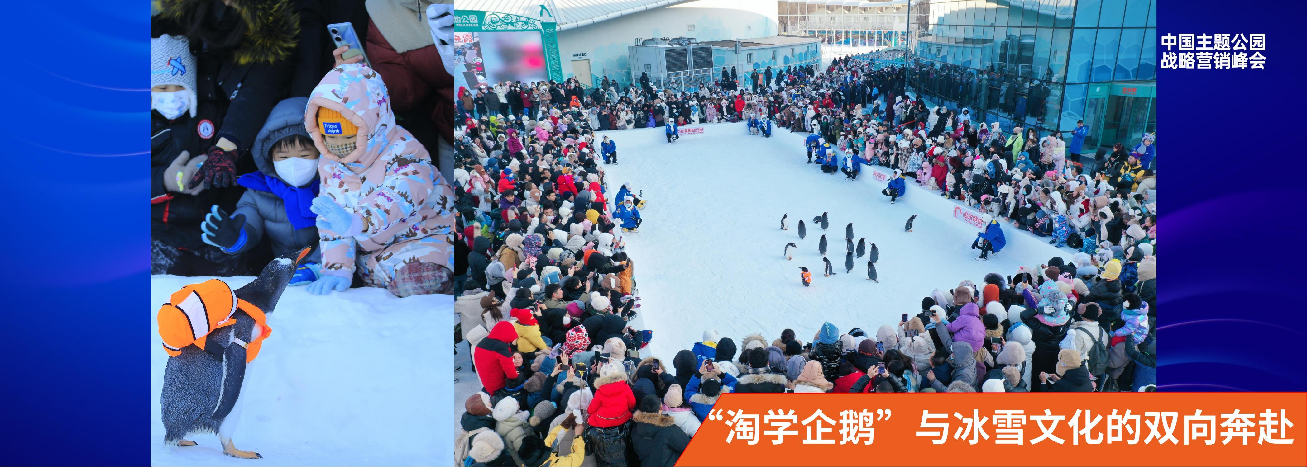哈尔滨极地公园原创冰雪文旅IP“淘学企鹅”,并在全国范围内首次将南极企鹅搬到户外,原创“淘学企鹅”打卡冰雪景区和淘学企鹅冰雪大巡游两大爆款活动。2023~2024年冰雪季,哈尔滨极地公园连续举办80场“淘学企鹅”冰雪大巡游,仅3个月网络曝光量就超过了100亿次,获国家级媒体报道140余次。“淘学企鹅”更是成为“尔滨”最具影响力的城市品牌。
