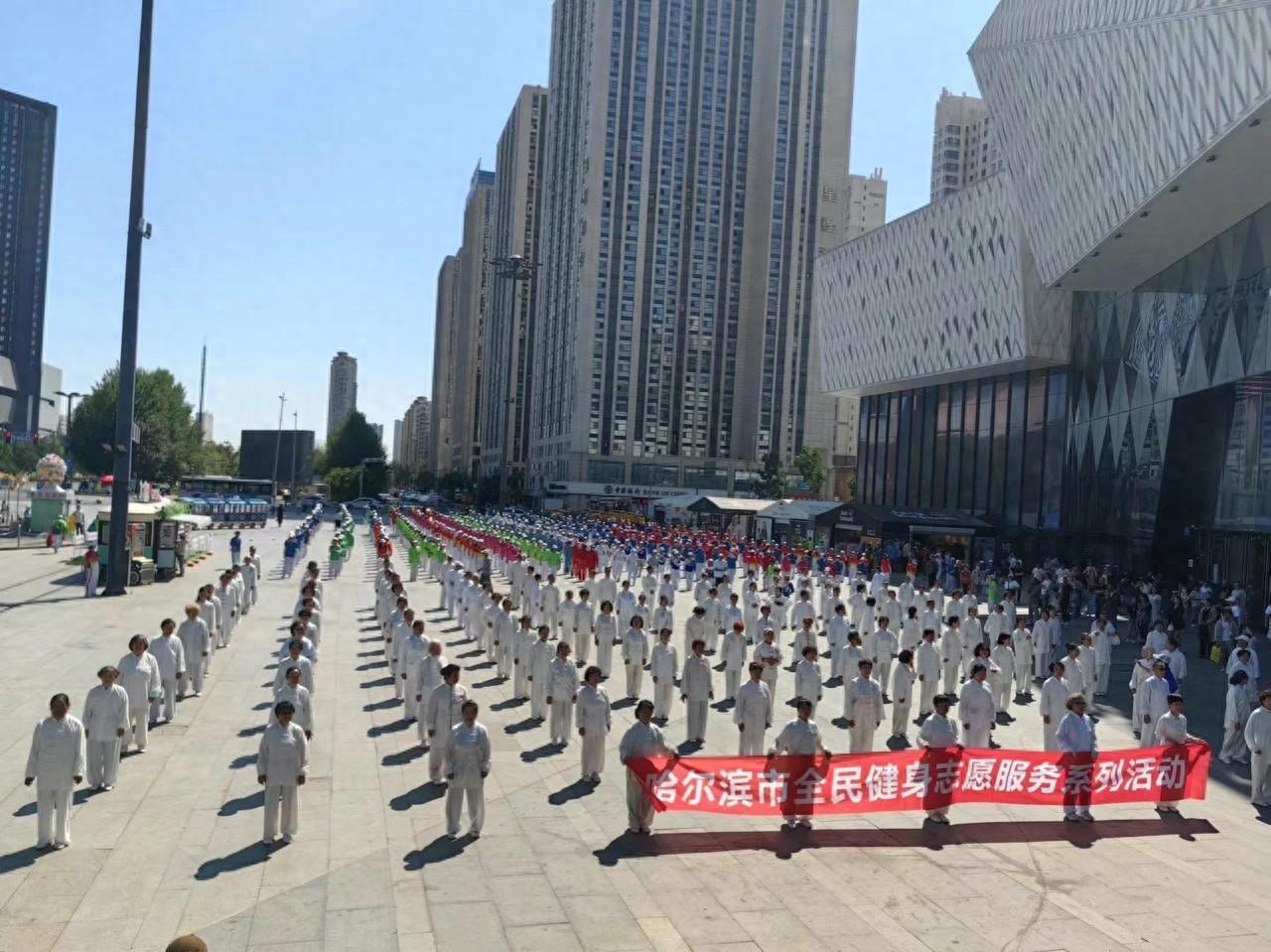 此次活动由哈尔滨市体育局指导,哈尔滨市社会体育指导员协会承办,哈西万达广场协办,近600名社会体育指导员和全民健身爱好者踊跃参与。