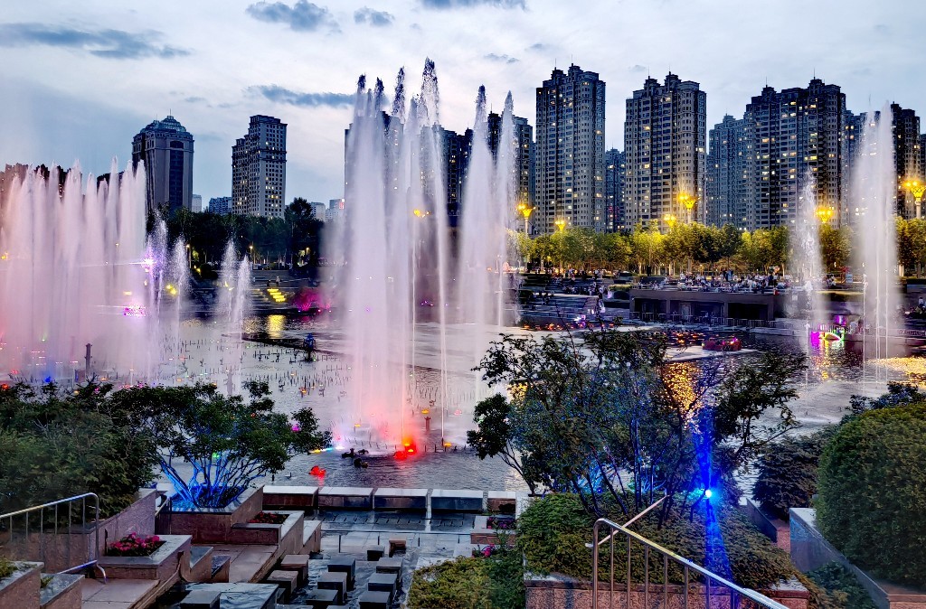 这处喷泉占地面积大、科技含量高,为夏夜里的冰城增添了一道美丽风景。