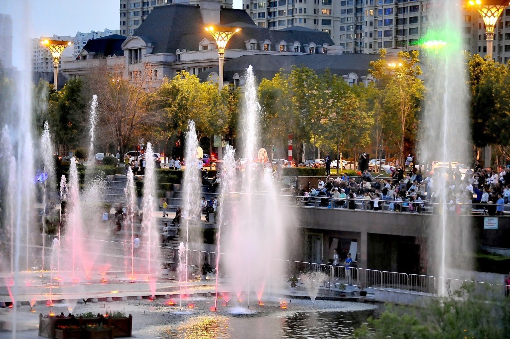 许多市民前来观赏喷泉