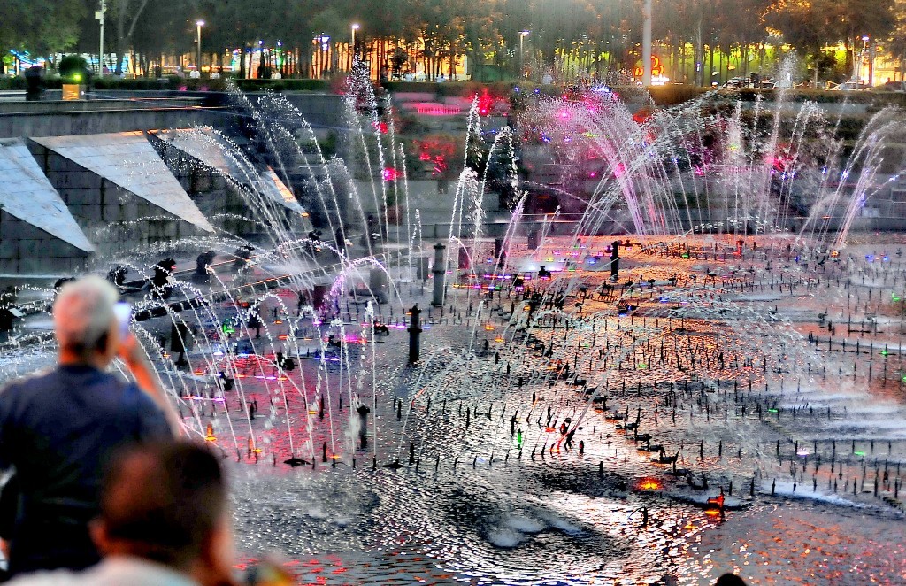 彩灯与喷泉互相映衬