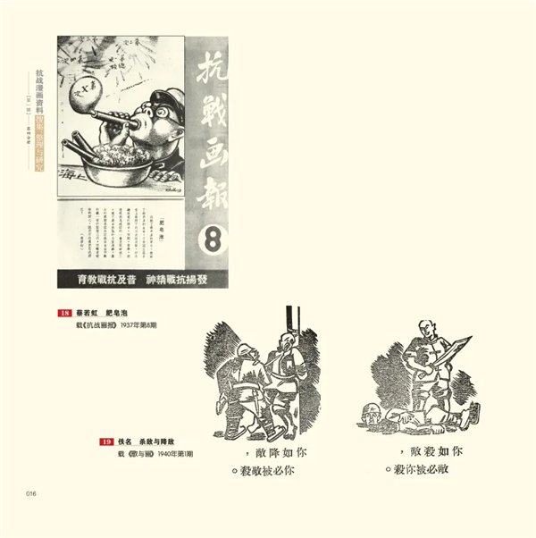 近日,黑龙江美术出版社出版的《抗战漫画资料搜集、整理与研究(第一辑)》全套6册出版,作为国家出版基金项目,系列图书用“抗战中的漫画”讲述“漫画中的抗战”。全书以中国抗战期间创作的抗战漫画作为搜集、整理及研究的对象,并延伸到国际媒体有关中国抗战的漫画,选取有代表性、有特色的抗战题材漫画1619幅,从不同侧面、不同角度解读中国抗战史,揭露日寇的残暴,展现中华民族不屈服于强敌的精神。