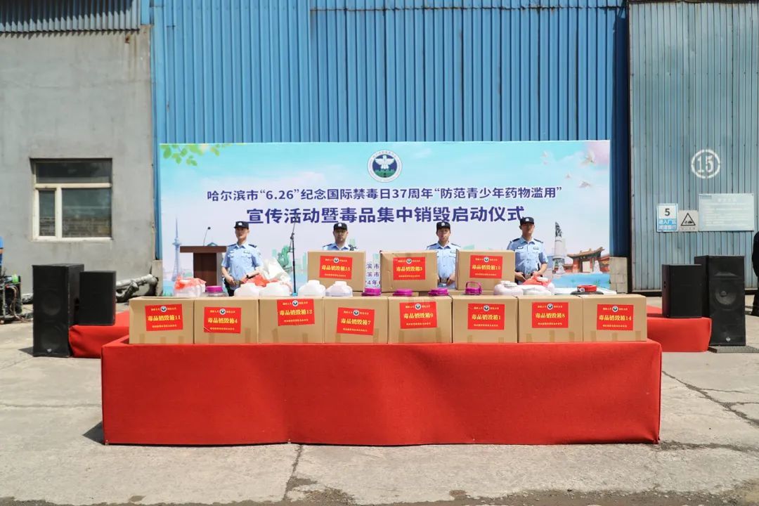 为迎接第37个国际禁毒日,增强公众对毒品危害的认识,动员全社会共同参与禁毒斗争,营造全民禁毒的浓厚氛围,6月26日,哈尔滨市禁毒办在索菲亚教堂广场举行纪念“6.26”国际禁毒日37周年哈尔滨市“防范青少年药物滥用”宣传活动暨毒品集中销毁启动仪式。