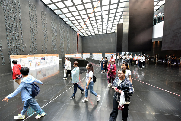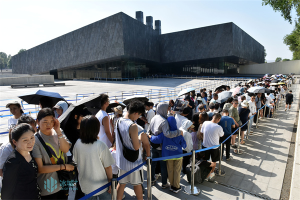 27日,侵华日军第七三一部队罪证陈列馆外观众们有序排队等待入馆参观。“七一”将至,陈列馆迎来大批参观团队,各机关单位和社会团体开馆开展各类党建活动。每日接待观众近一万人次,讲解30场次。