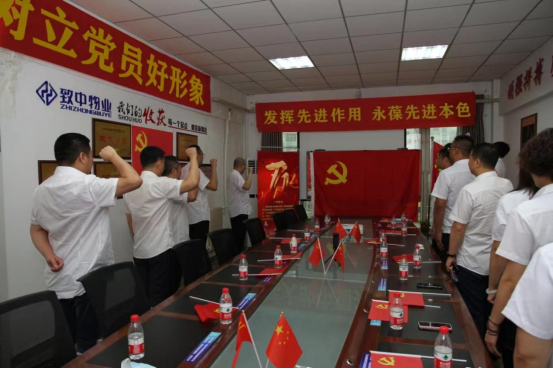 致中物业公司组织党员重温入党誓词,观影《跨过鸭绿江》。