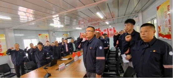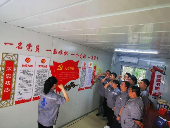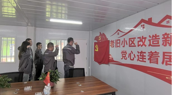 建工建设公司党委在南岗区老旧小区项目部组织党员重温入党誓词,进一步加强党员责任感和使命感,以积极进取的心态创先争优,立足岗位发挥党员先锋模范作用。