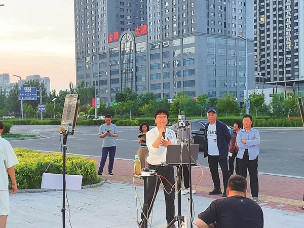 大庆东站广场上,网络达人“亮哥呀”正在直播,现场围观者众多,直播间人气更旺。“亮哥呀”是大庆众多户外主播中的一员,直播地点大多选在大庆西站、兰德湖等城市地标处,娱乐同时,宣传大庆,展现城市之美。