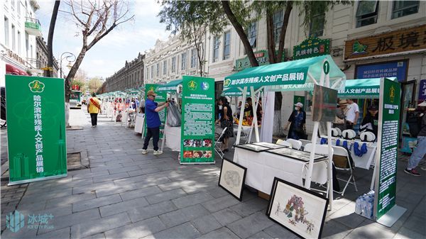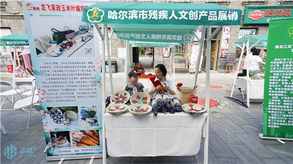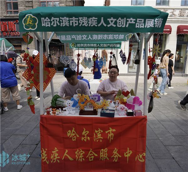 7月4日,哈尔滨市残联在中华巴洛克历史文化街区举办残疾人文创产品展销大集,60个展位共展出残疾人文创作品1000余件。