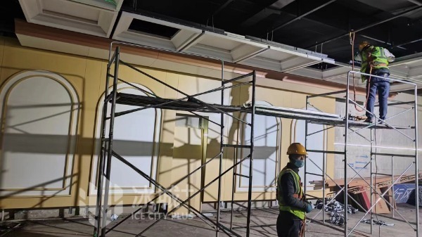 在机电安装工程中,大量设备、电缆材料等大重量、大体积物品的运输进站是一个较大的难点。运输物品包括大风机、变压器、高低压配电柜、消声器、自动扶梯等万余件设备及40余万米电缆线、千余个站台门门体、近10万平米大型风管等大型材料。一捆电缆线达900米长,需要150人在车站主体的电缆夹层、走廊综合支吊架区域里进行,有的地方高度仅1.4米,施工难度较大。据测算,每个车站的电缆铺设达50公里长。
