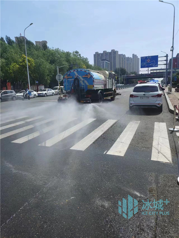 近日,哈尔滨市气温提升,为确保市容环境卫生质量,香坊区城管环卫部门采用湿扫、洒水、冲洗街路相结合的作业方式,为城市送去“清凉”。