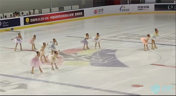 在活泼的儿童音乐声中,平均年龄不到8岁的10名花滑小将优雅出场,在2分47秒的队列滑表演中配合默契、动作整齐划一,超预期完成所有难度动作!