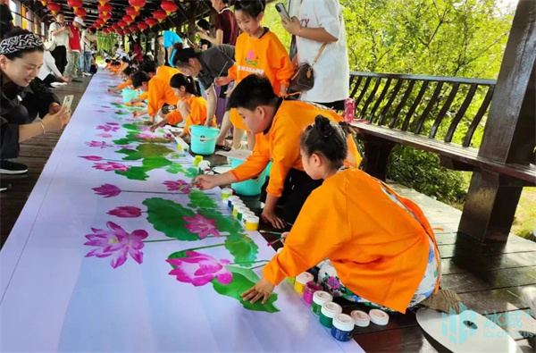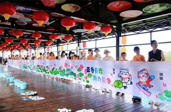 莲花节期间,方正县妇联在湖心岛长廊举办以家庭为单位的绘画活动,筛选了50个家庭参与,共同在百米画布上用色彩和创意表达对莲文化、对家乡的热爱和对亚冬会的期盼。