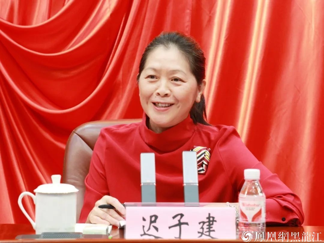 黑龙江省政协领导陈海波、郝会龙、韩立华、张亚中出席讲座,迟子建主持讲座。