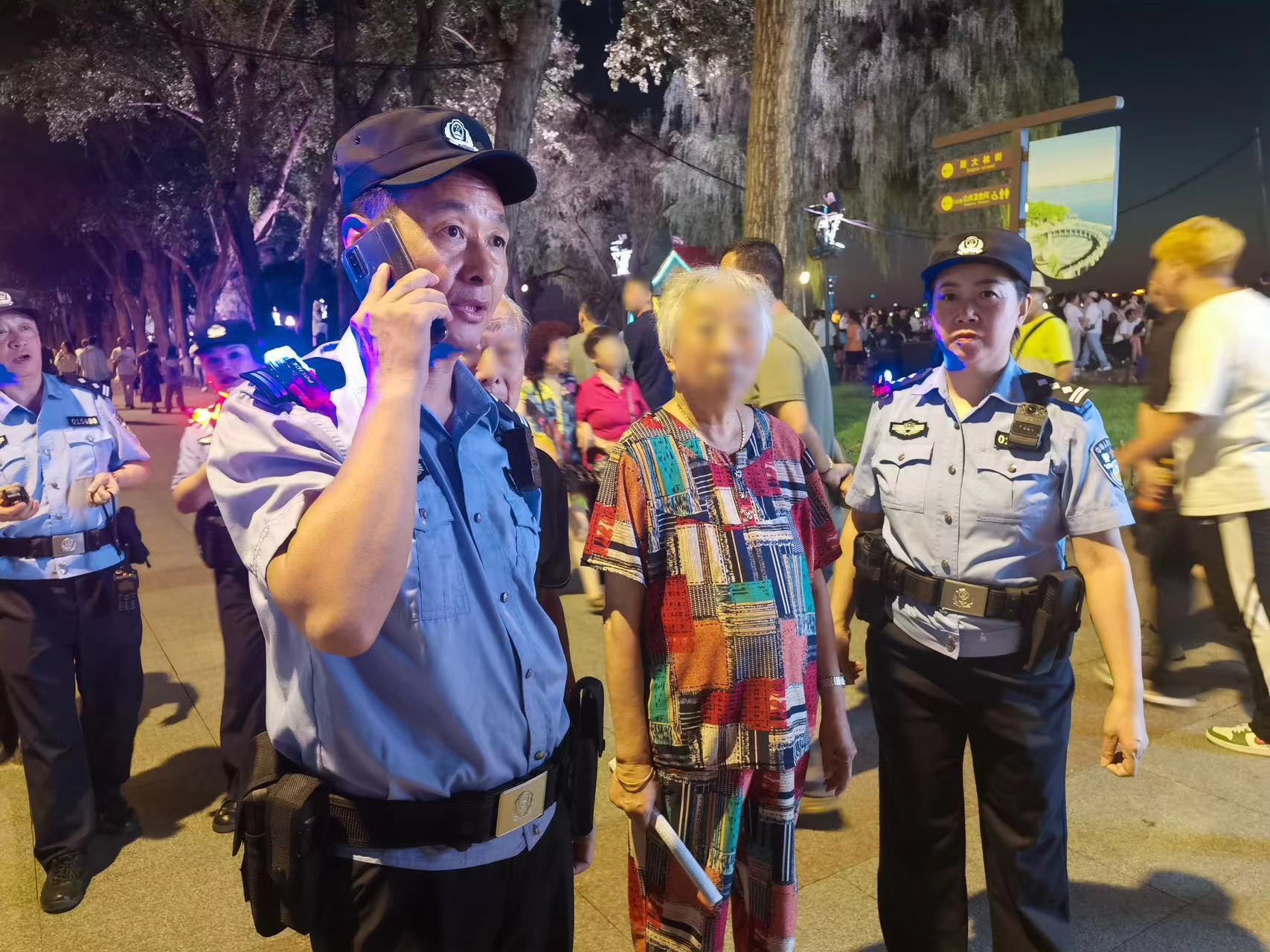 “少年夫妻老来伴”,老人满眼的泪水,对老伴的担心溢于言表,在场每位巡逻民警的心顿时紧张起来。“别着急,你把详细情况和我们说说,我们发动多方力量寻人”,巡逻一组民警一边安抚求助张大爷的焦虑情绪,一边向其了解老人的外貌特征等信息,并通过调取视频监控、巡查询问等方式进行寻找。巡逻二组民警以通江广场为中心,分包区域,逐步向周围扩大搜寻范围,通过不间断查找,终于在通江广场不远处找到了走失的姜大娘,老人对自己迷路的行为十分自责,喃喃地说:“我真是老了,不中用了,让94岁老伴为我担心,还给你们添麻烦,”民警贴心地安慰老人:“人人都有变老的一天,我奶奶也和您年龄相仿,您不用自责。”一路上,民警陪老人唠着嗑、话家常,这一瞬间温馨感人,让人泪奔。