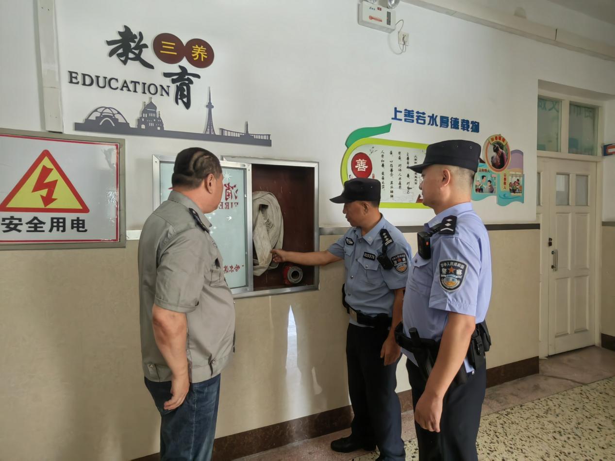 各派出所民警辅警深入辖区小学、幼儿园,按照“一校一策”工作要求,通过“查、看、问”等方式对校园内教室、食堂、操场等公共教学区域开展“全覆盖、无缝隙”的安全隐患排查。对学校监控设备、消防器材、安保器材、一键报警系统等设备配备使用情况进行检查,保障技防措施安全顺利运行。督促校方落实专人管控职责,及时更新、修补校园安防基础设施,配齐配全钢叉、防护盾牌、警棍等防护装备,确保设备设施能用管用。