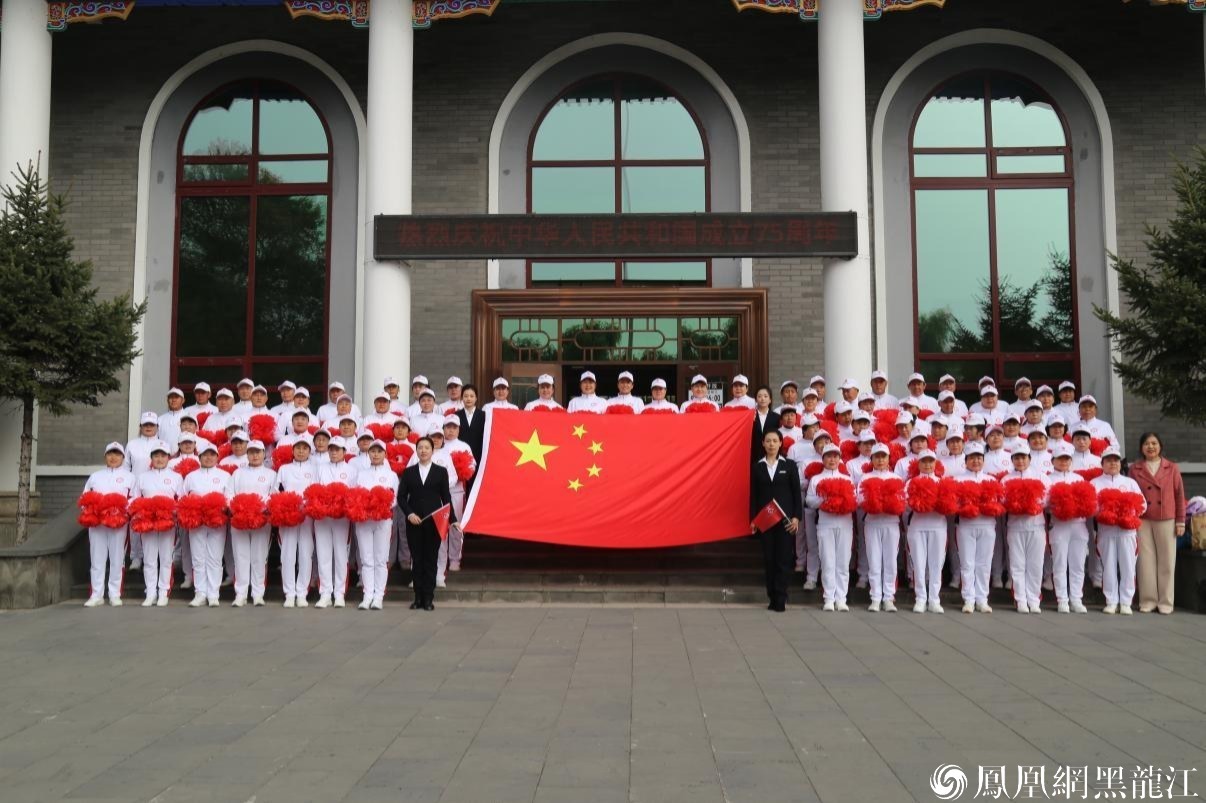 庄重的升旗仪式后,75人方队共同合唱了《迎风飘扬的旗》,抒发了对祖国的赞美与感恩之情。