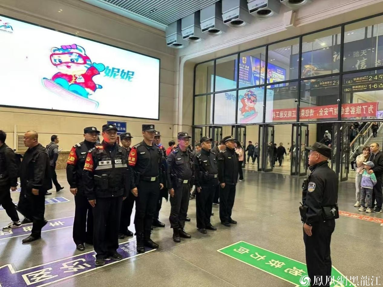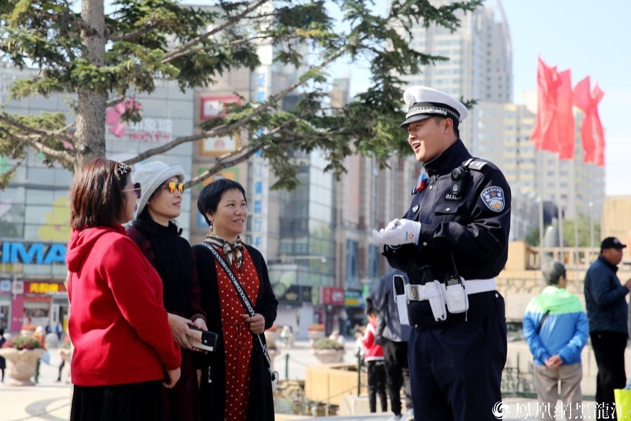 “旅客朋友们,欢迎大家国庆来哈尔滨游玩,前方就是哈站北广场,大家保管好自身财物、看管好自家孩子,有需要帮助的可以来车站警务室,祝大家国庆节快乐!”站前分局民警正在引导出站旅客。站前分局在提高见警率时,同步为旅客提供优质帮助。组织民警帮助引导出站旅客,并同步开展反诈、防盗宣传,增强旅客的安全防范意识。