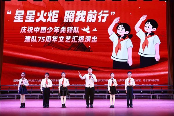 10月13日,为庆祝中国少年先锋队成立 75 周年,一场别开生面的文艺演出在哈尔滨市道里区文化馆隆重举行。本次活动由中国儿童文化促进会、哈尔滨市群众艺术馆为指导,哈尔滨市朗诵协会、哈尔滨市道里区文化馆、哈尔滨华德学院共同主办,黑龙江省演出行业协会朗诵表演专业委员会、黑龙江省汐美星河艺术团协办。