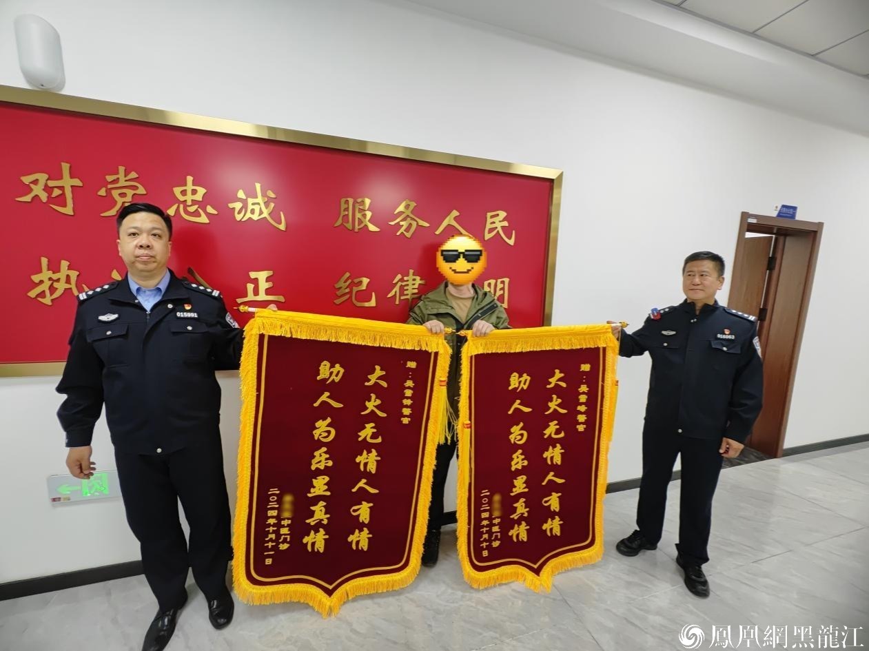 “你是我们的英雄!”10月13日,中医馆工作人员来到哈尔滨市公安局道里分局新发派出所,拉着民警吴雪峰的手感谢道,并将两面锦旗赠与吴雪峰手中。