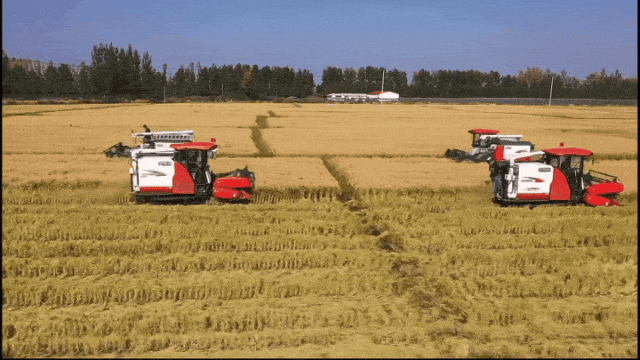 农民们忙碌的身影与机械的轰鸣声