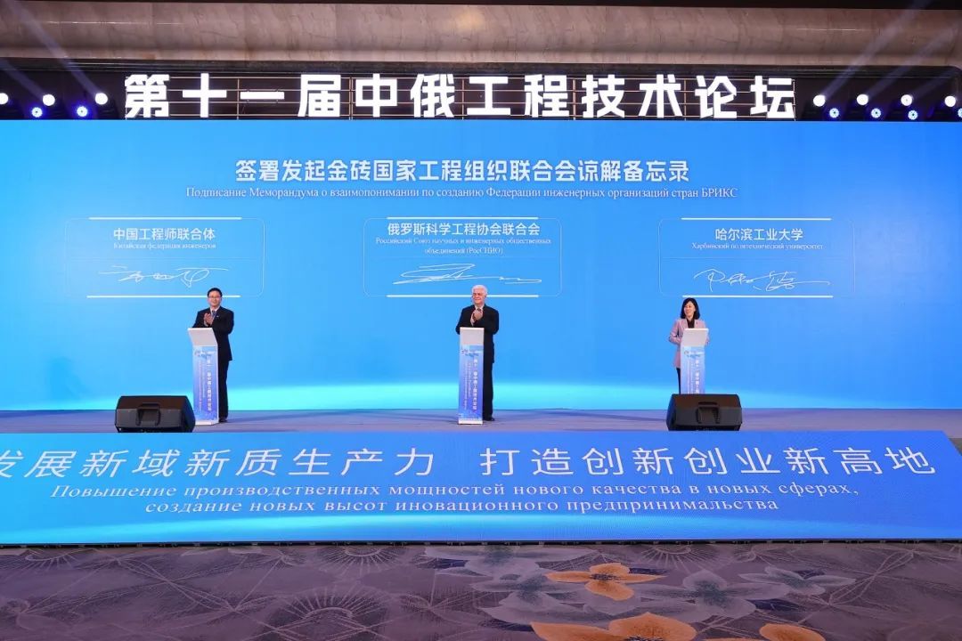 论坛期间,有关单位签署发起金砖国家工程组织联合会谅解备忘录,中俄科技组织签约,对俄成果转化基地揭牌,中俄首届汉俄科技翻译大赛颁奖。3家高新技术企业发布数字经济应用场景。6位中俄院士专家围绕促进工程技术发展作主旨报告。
