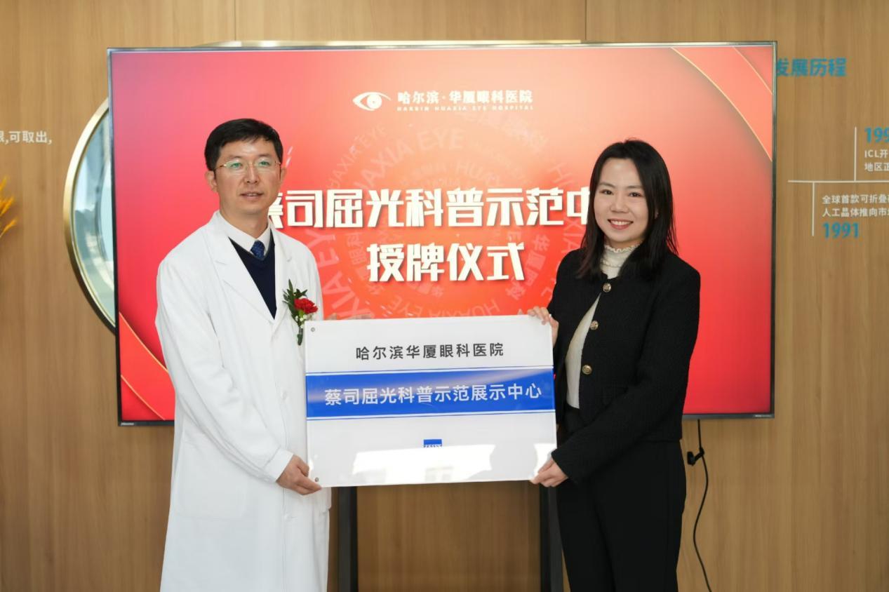 开业仪式当天,哈尔滨华厦眼科荣获“蔡司屈光科普示范中心”“德国蔡司VisuMax微创全飞秒临床合作单位”“德国千频阿玛仕准分子应用示范基地”“德国阿玛仕Foresight应用示范中心”等一系列授牌,标志着医院与多个国际头部厂商正式建立长期稳定的合作关系。同时医院与宏达医疗联手打造“角膜胶原交联手术培训基地”,将进一步推动前沿眼科治疗技术在该区域的学术研究与临床应用。