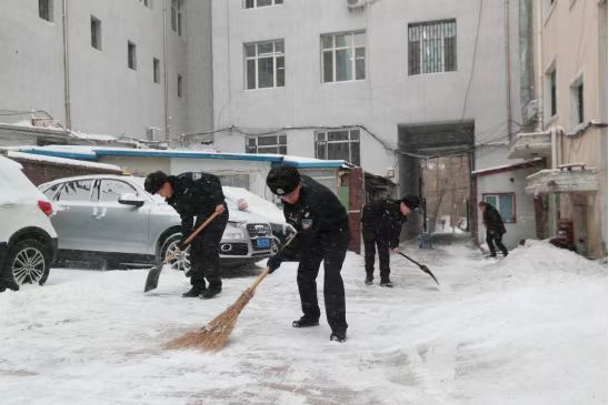 为了减少恶劣天气给群众带来的不便,全市公安机关深入推进“我为群众办实事”,在冰冷的天气中提高为群众服务的温度,组织民警深入辖区老旧小区,逐门逐户进行走访,仔细查看积雪对楼体墙面及树木毁坏情况,设置警示标识,及时清除路障。