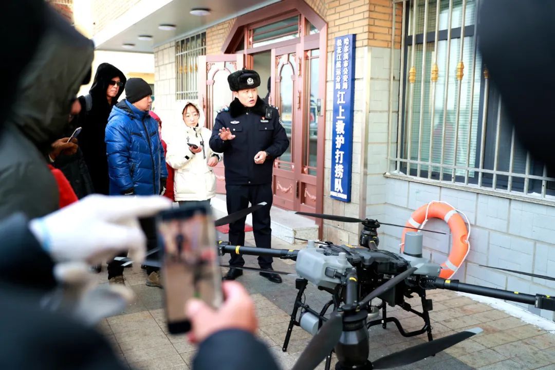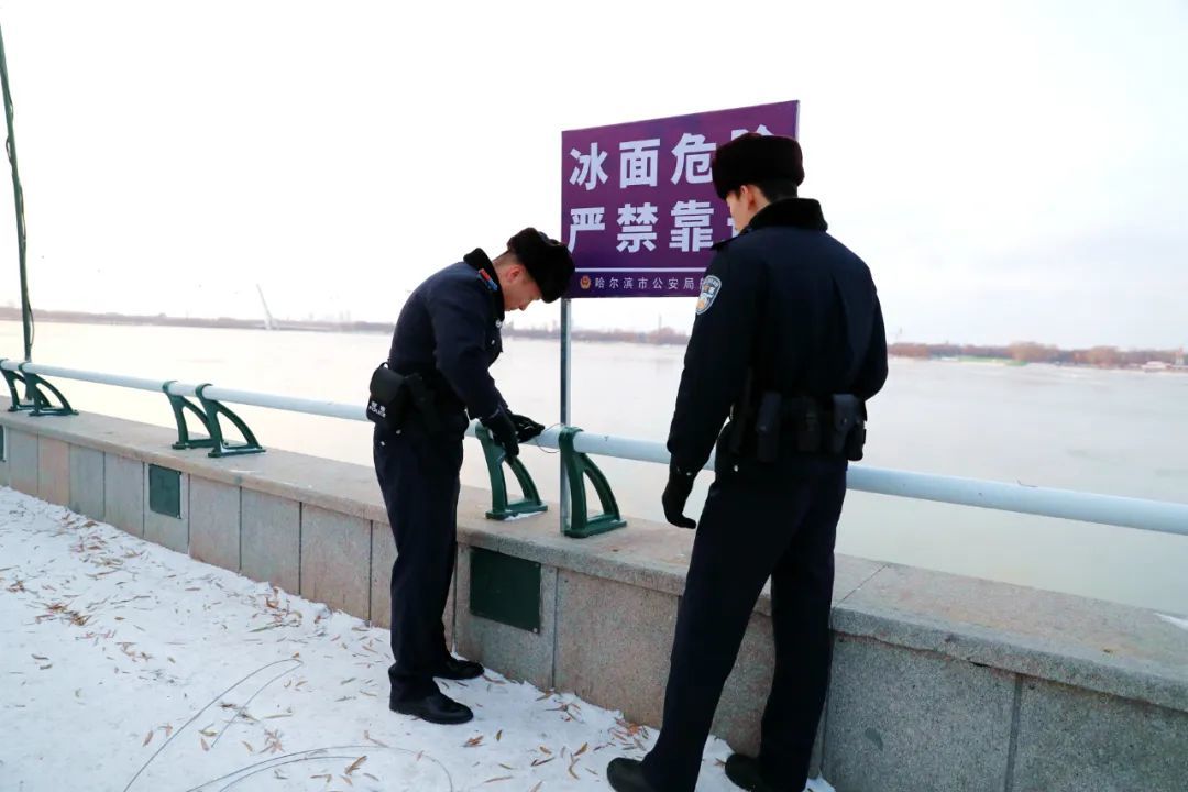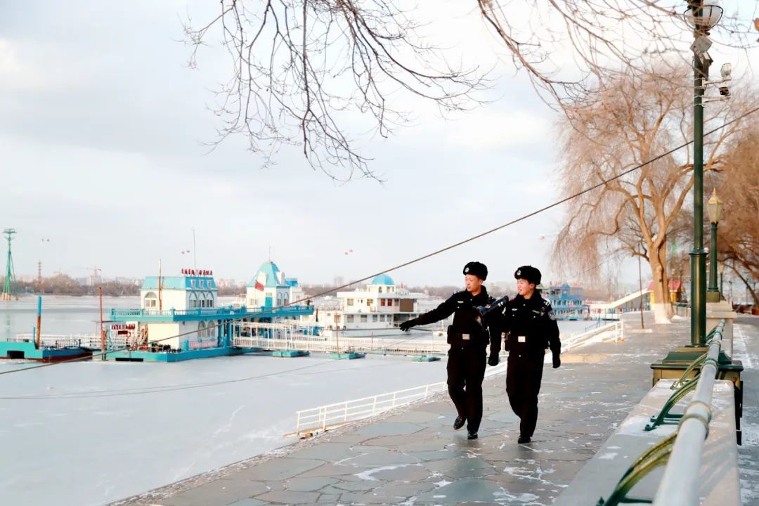 市公安局组织警力加强松花江沿线的巡逻防控,在重点区域开展无人机巡查,及时劝阻冒险到冰面的游人。同时,组织辖区分县局采取“车巡+步巡”相结合的方式,对沿江重点景点和人员密集区域,开展常态化巡逻防控。