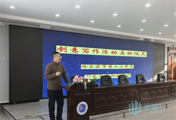 黑龙江省作协创研室姜超主任、省文学院副院长周静参与了颁奖仪式,并在创意写作活动启动仪式上,为校文学社赠书并讲话。其对十二中深厚的文化底蕴和优良的教育传统,和在文学教育及教师专业化发展方面所取得的成绩予以赞扬,认可十二中在创意写作方面的优势,激励学生进行创意写作,争取早日成为省作家培训班的正式培训对象,并深情寄语:“书山有径,笔下有路,文学世界芬芳馥郁,等待你们徜徉其中。”