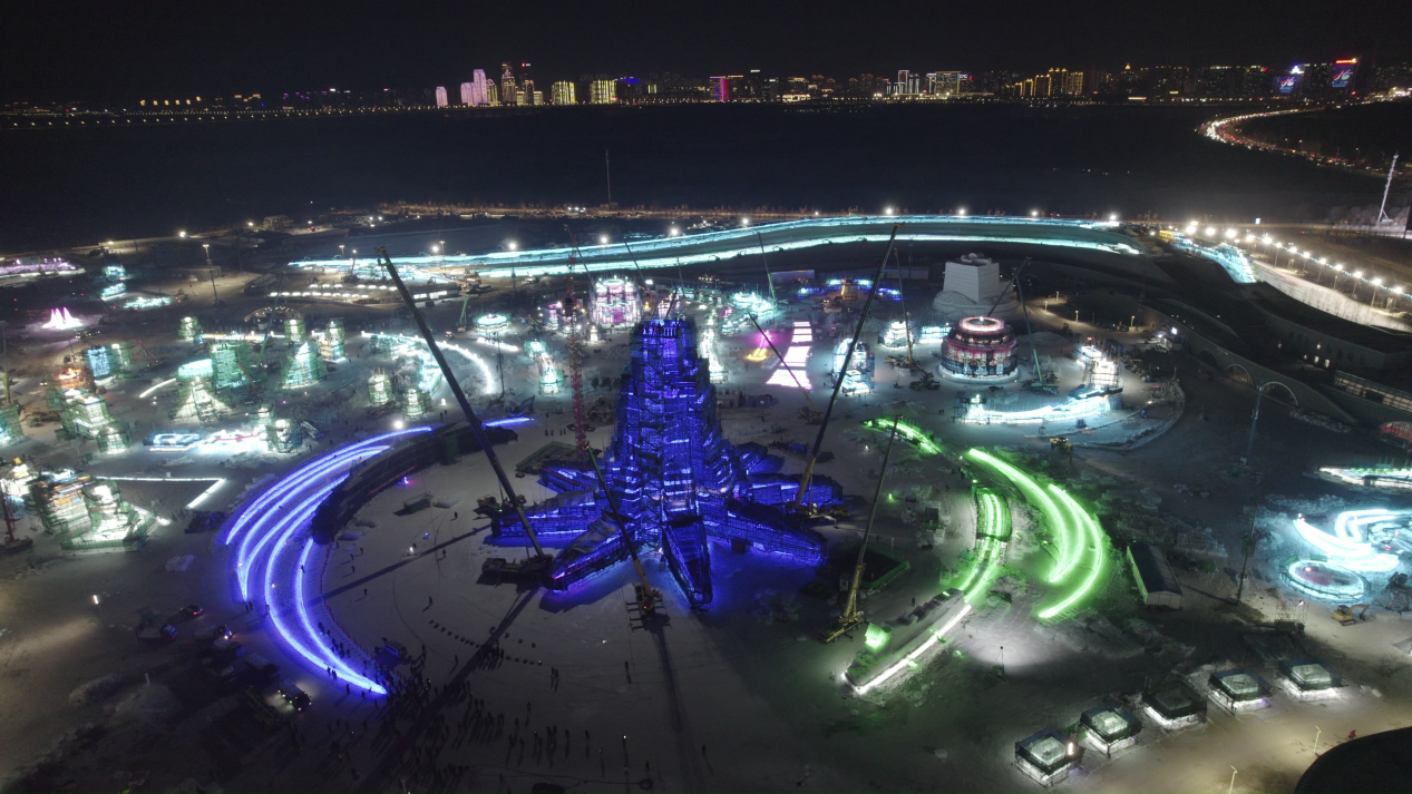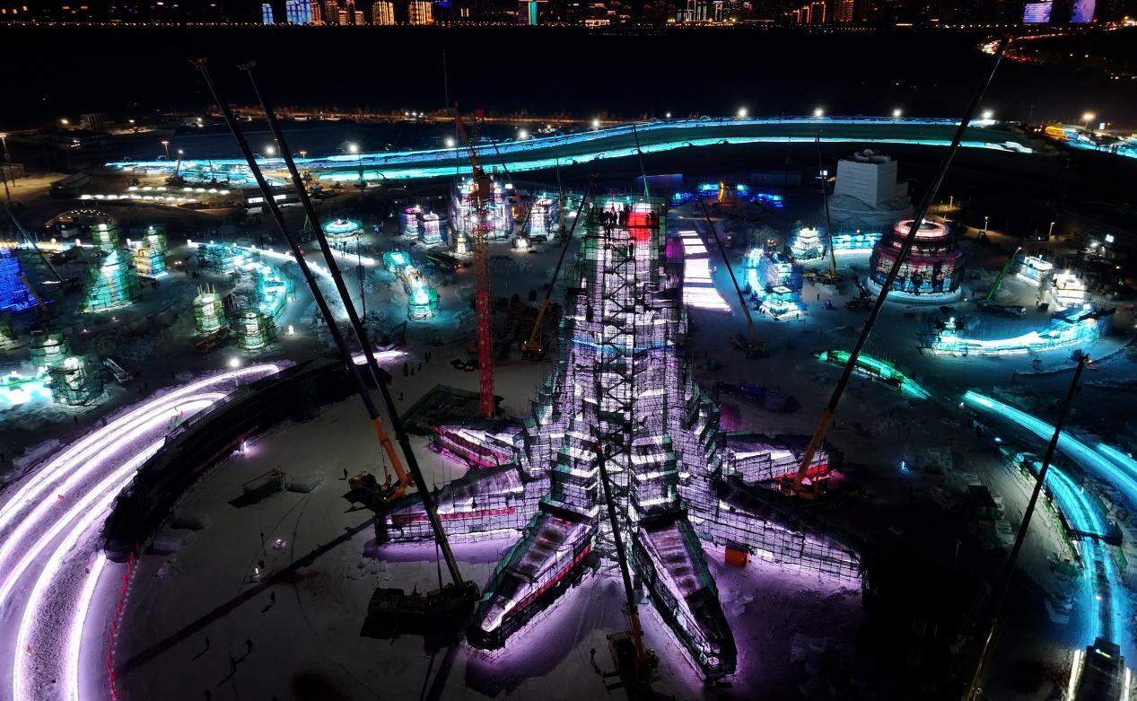 主塔封顶!第二十六届哈尔滨冰雪大世界“亚洲同心”即将璀璨登场