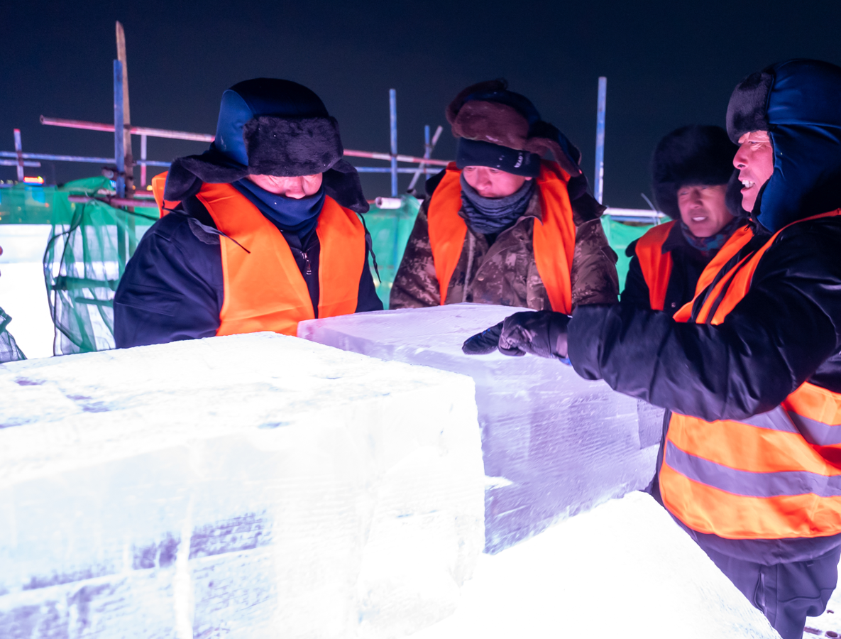 与此同时,园区内冰建工人、冰雕匠人、电工、特种设备操作工、技工、安全员、项目监理等万余名工作人员,正在紧张有序地忙碌着。从采冰、验冰、建设到灯光布设等各环节力求完美、精益求精。所有人全力以赴,加速推进各项工作实施,力保在第二十六届哈尔滨冰雪大世界开园迎客之日,为海内外游客展现无与伦比的冰雪奇观。