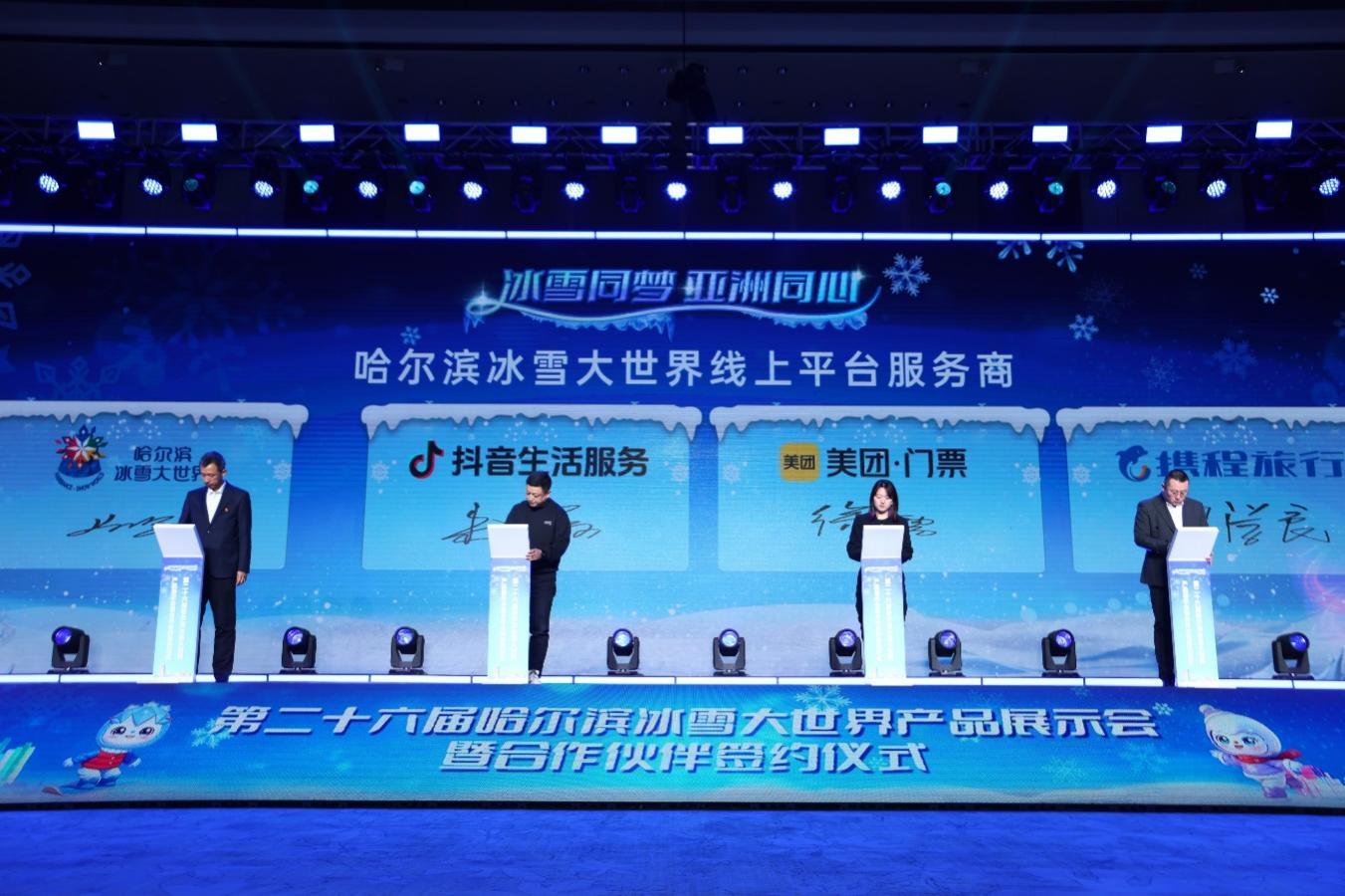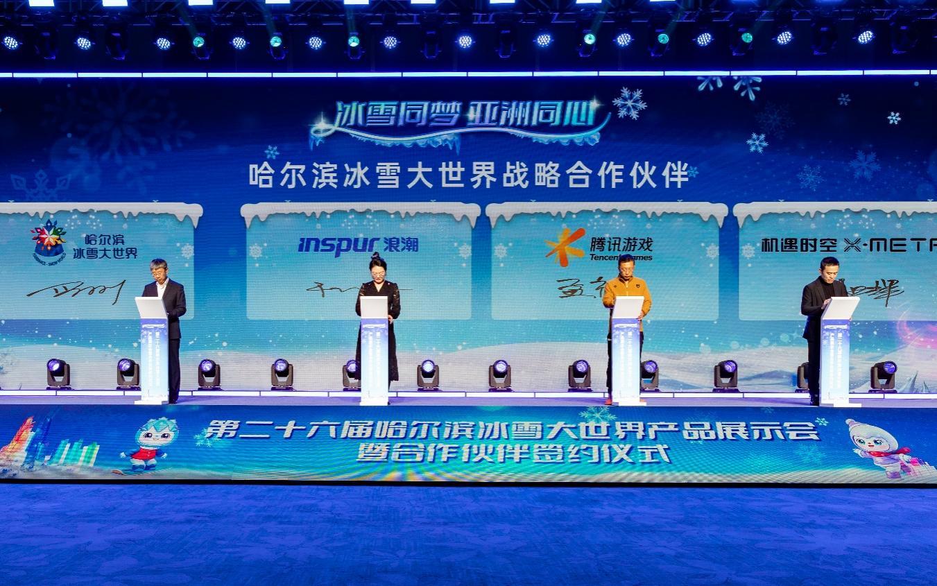 活动中,哈尔滨冰雪大世界宣布与跨界共创伙伴腾讯游戏达成长期战略合作,通过游戏+文旅的方式为游客提供更多游玩体验,同时与浪潮智能终端有限公司、上海沉浸机遇科技开发有限公司,渠道合作伙伴美团门票、抖音生活服务、携程集团分别签订了合作协议。这个冰雪季,哈尔滨冰雪大世界将与各实力合作品牌形成合力、创新共赢,多维度、多领域为游客提供细致周到的游玩全体验、推进冰雪产业跨越式发展。