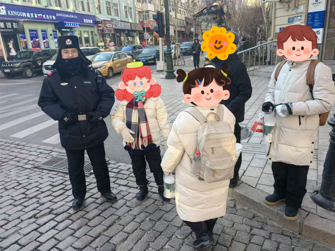 12月12日13时许,中央大街治安巡逻队巡逻辅警巡逻至西二道街时,遇到南方游客求助,称与家人走散,并且没带手机无法联系到家人。辅警通过游客提供的联系方式联系到其家人,由于游客的家人是广东来哈游客,说不清楚自己的位置,辅警便通过游客描述附近店铺名字得知其位置在西五道街街口。确定游客家人的位置后,辅警一路护送游客与其家人团聚,游客对巡逻辅警表示感谢。