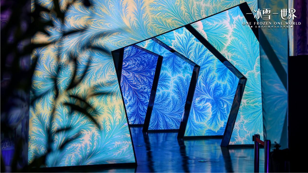 沉浸式投影空间立体环绕式打造震撼体验,AI技术模拟呈现冰雪微晶的细致结构美学,见证冰雪的丽态与终归,传递「雪落成境 万象轮回」的诗意。机械、交互、沉浸等多种AIGC智能技法演绎每一片冰晶与雪花的结构美学与自然礼赞。