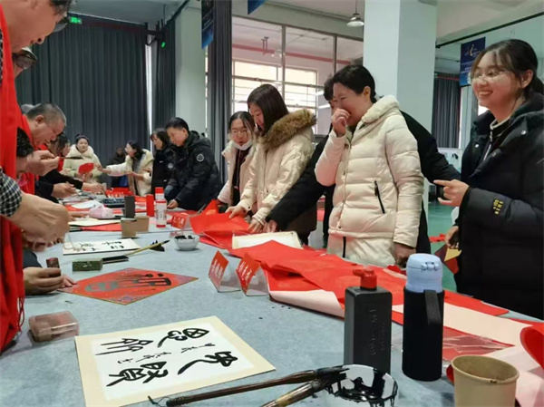 12月24日,市书法家协会顾云祥、吕守堃、刘克成、景晓强、孙垚、王旭、沈秋、沈宇翔和张仁伟组成小分队来到哈尔滨市轻工业学校,开展“万福迎春”公益活动。活动现场,书法家们挥毫泼墨、笔走龙蛇,将新春的祝福融入笔端,一幅幅春联和福字将书法家们的深情祝福和美好祝愿送给学校师生。